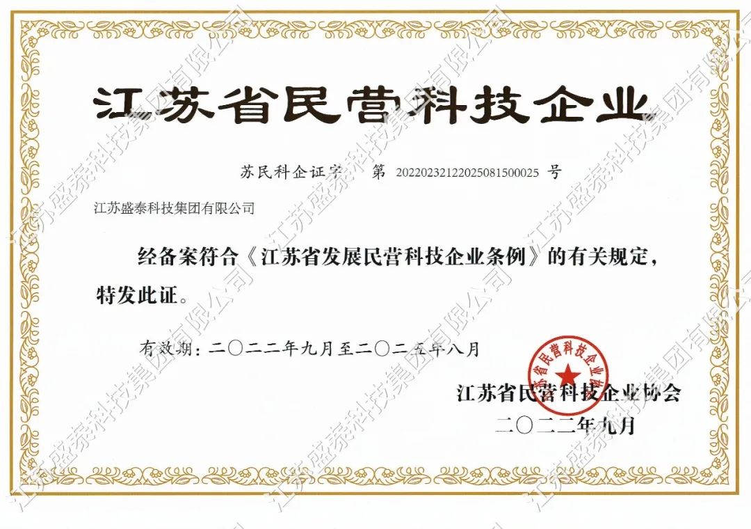 喜報(bào) | 盛泰科技榮獲“江蘇省民營科技企業(yè)”稱號!